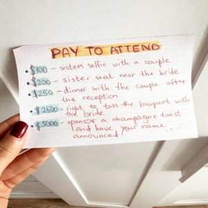 This doesn’t sound like a wedding invitation. It sounds like a pyramid scheme