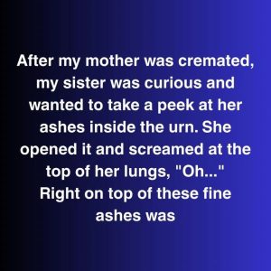 After my mother was cremated, my sister was curious and wanted to take a peek at her ashes inside the urn. She opened it and screamed at…