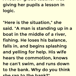A fourth-grade teacher was giving her pupils a lesson in logic. “Here is the situation,” she said. “A man is standing up in a boat in the…