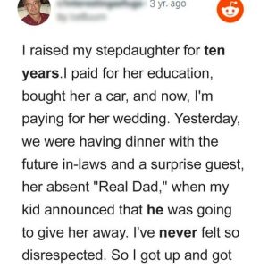 A girl’s stepfather generously paid for her special day in an unexpected wedding decision, only to be upset and angry when she selected her biological father to…