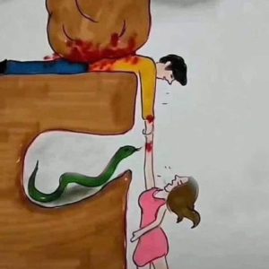 The man doesn’t know that there is a snake underneath. The woman doesn’t know that there is a stone crushing the man. The woman thinks: “I am…