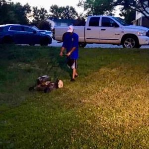 This man came into my yard a couple of hours ago and offered to cut my grass for a certain price.