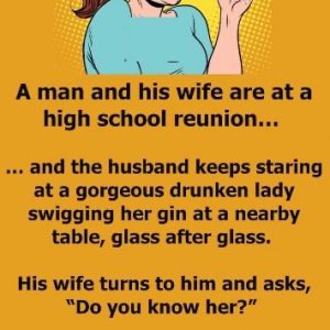 A man and his wife are at a high school reunion… … and the husband keeps staring at a gorgeous drunken lady swigging her gin at a…
