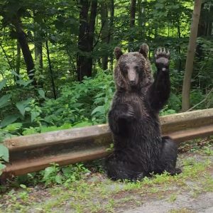 Friendly Bear Waves as Tourists Pass By!