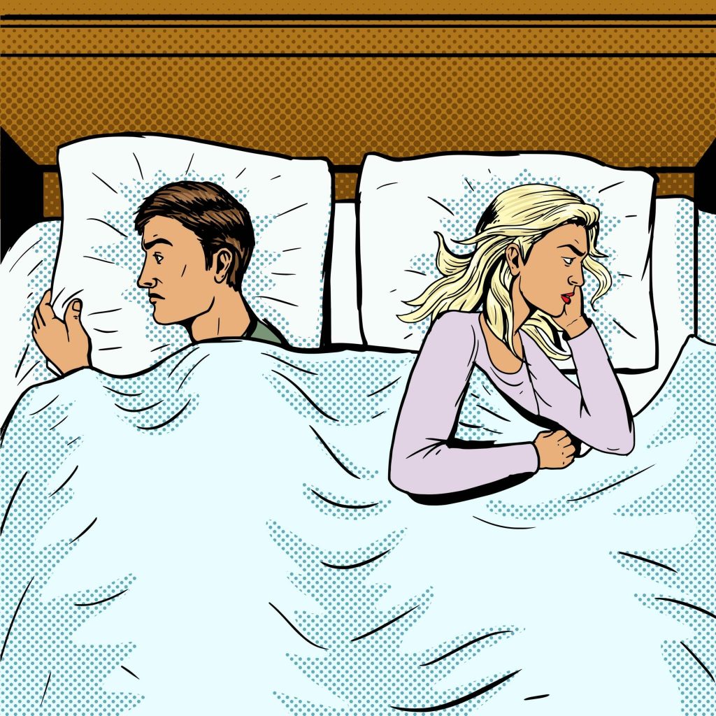 In this moment of intimacy, the wife appears to snap out of her silence. She redirects her gaze from the ceiling to her husband, her expression now one of frustration. With a hint of exasperation, she blurts out, “Oh, come on! You’ve made me lose count!”