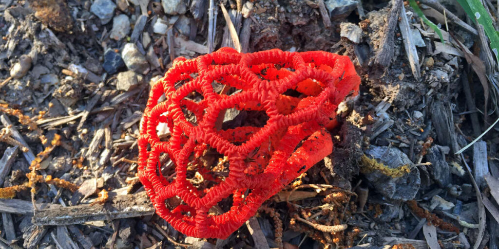 A strange, fast-growing fungus that appears suddenly after rain or humidity, looks like something out of a horror movie… and smells awful on purpose. The odor attracts insects, which spread the spores.