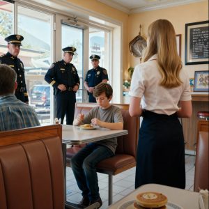 **A Waitress Secretly Fed a Quiet Boy Every Day — One Morning, 4 SUVs Pulled Up to Her Diner** In a small prairie town, Maggie’s Café was…
