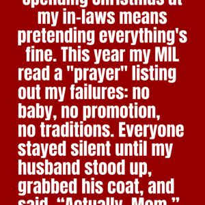 Spending Christmas at my in-laws meant smiling through clenched teeth and pretending everything was fine. Every year, my mother-in-law hosted dinner like she was auditioning for sainthood—perfect…