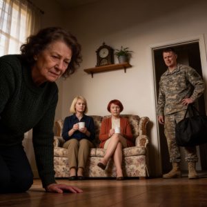 After five years away, my soldier son came home and found me on my knees, scrubbing the floors of my own house—while his wife and her mother…