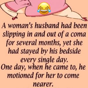 Just a joke. No hard feelings! A woman’s husband had been slipping in and out of a coma for several months, yet she had stayed by his…