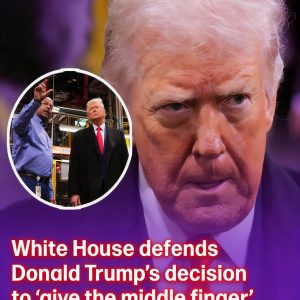 The White House has defended President Donald Trump after he appeared to make an obscene gesture toward a heckler during a visit to a Ford F-150 factory…