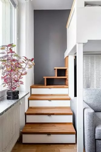 There is also a TV-set and a mini-bar, and each stair is used for storing things.